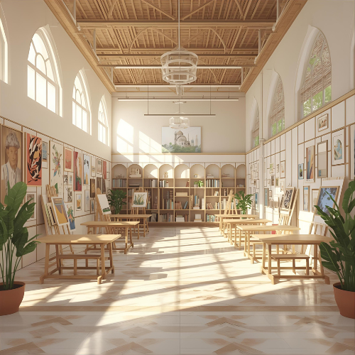The Art Studio is established as a dynamic sanctuary for aesthetic development and personal expression, intrinsically supporting Joyful Inquiry & Discovery. This dedicated space is furnished with a diverse range of high-quality materials and tools necessary for engaging in drawing, painting, sculpting, and collaborative creative projects. The Studio provides a supportive, open environment where primary students are encouraged to experiment freely, embrace originality, and develop fine motor skills. Furthermore, the collaborative nature of art encourages patience, mutual respect, and the appreciation of diverse perspectives, directly reinforcing Ihsan in Character and fostering a deeper appreciation for the beauty inherent in Allah (SWT)’s creation.