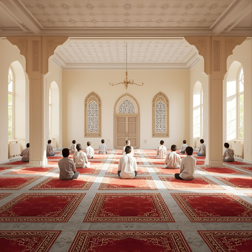 The Prayer Rooms at Future Ummah International School are dedicated sanctuaries, meticulously maintained and appropriately segregated to serve as vital extensions of our commitment to Spiritual Rootedness. This serene environment provides students and staff with a conducive space for observing daily Salat and engaging in quiet reflection, ensuring the consistent practice of Ibadah is seamlessly integrated into the school day. These rooms actively reinforce Ihsan in Character by requiring students to demonstrate the highest standards of Adab—including cleanliness, silence, and mutual respect—making the spaces central to nurturing concentration and devotion to Allah (SWT).